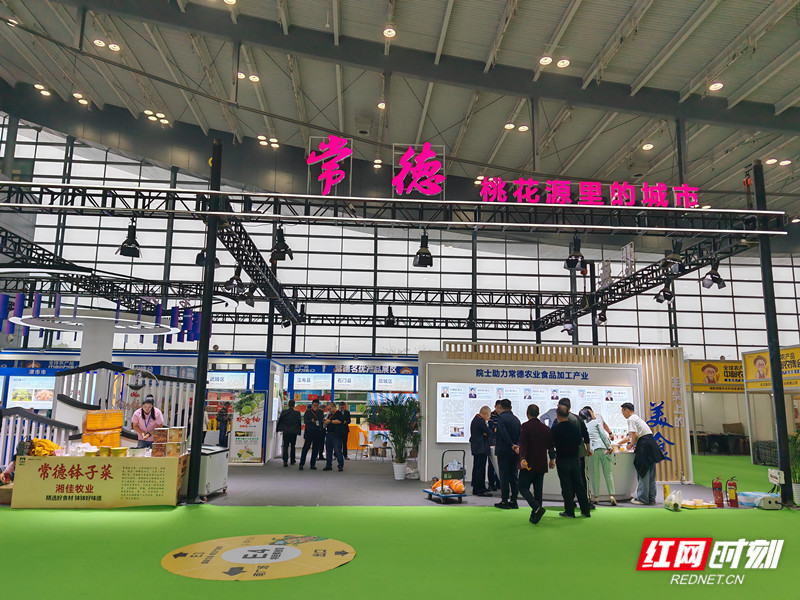 常德展馆内的石门柑橘、食用菌、玉臂藕等产品,也得到参观者青睐。除了鲜销农产品,常德米粉、食用菌、灵芝、酱板鸭系列、代用茶、豆制品、擂茶、甲鱼钵、德人牧香奶、休闲零食等加工农产品,占据了展馆的“半壁江山”。