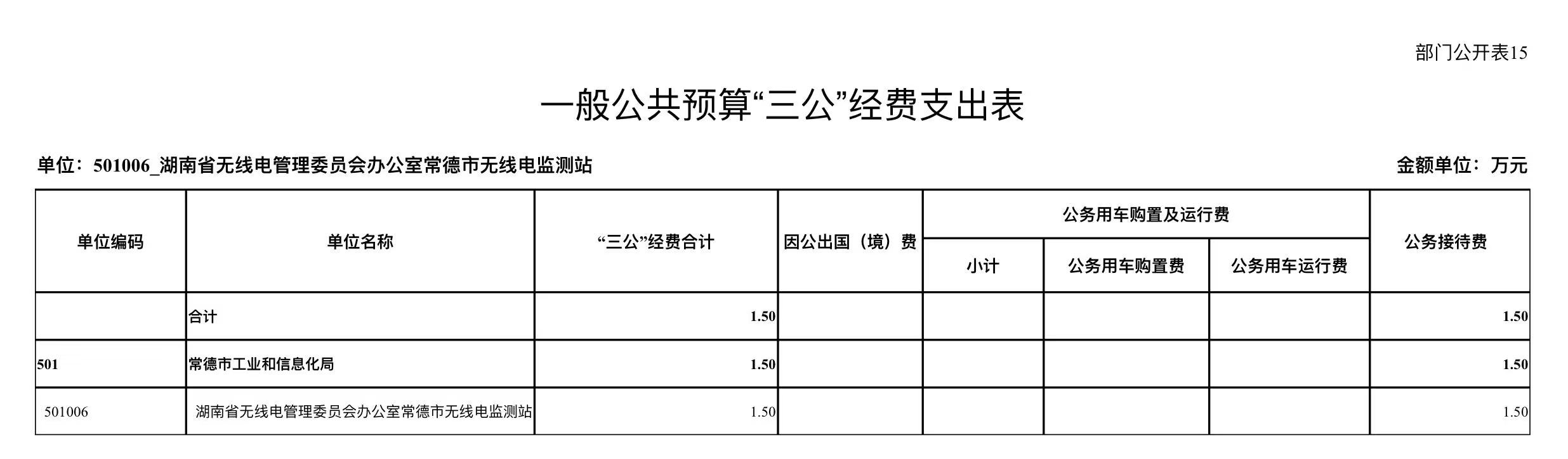 常德市无线电监测站2025年一般公共预算“三公”经费支出表