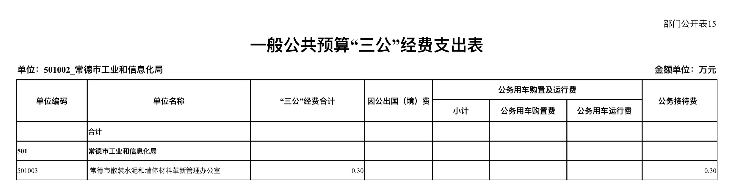 常德市散墙办2025年一般公共预算“三公”经费支出表