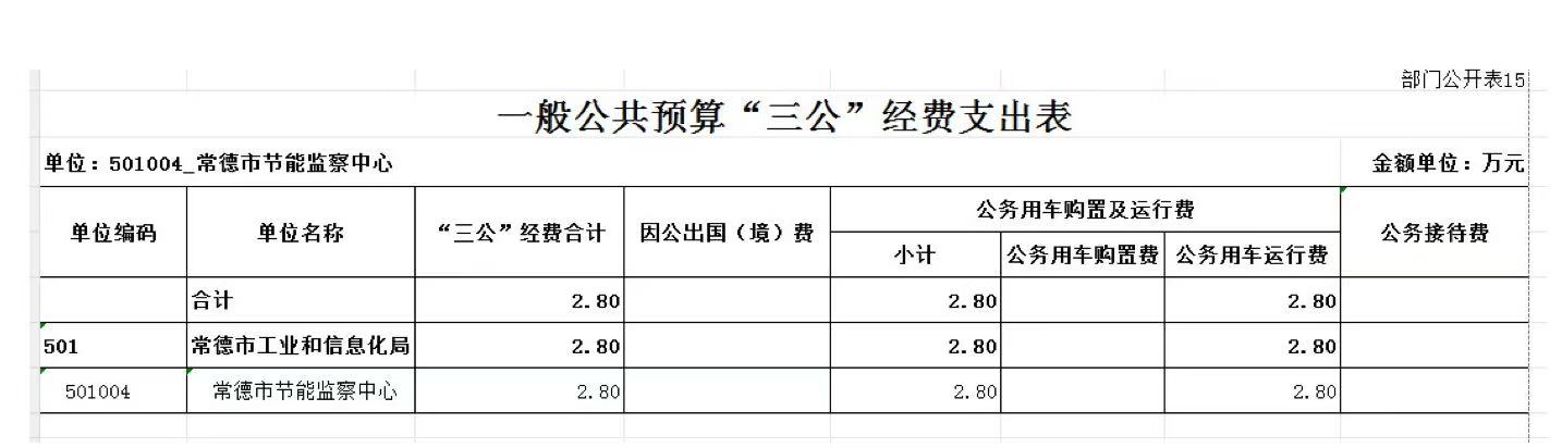 常德市节能监察中心2026年一般公共预算“三公”经费支出表